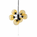 中央の柱はブラックのでこぼこしたエイジング塗装を施しており、 6つの枝が出ているかのようなソケットには、アンバー色のグラスを被せ幻想的な光を演出します。 6灯で明るさも確保できるのが特徴の照明です。