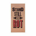 活版印刷ならでの味わいのある懐かしさに、ポップな今っぽさをプラスした温故知新な魅力があるポスター。「stand still and rot (立ち止まるものは腐る)」。人生に基本的なこと。常に動き、常に”学習”すること。立ち止まらないことは遅い死を意味すると思う。