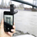 8倍の倍率と調整可能なフォーカシングリングを備えた、スマートフォン用クリップ式望遠鏡。レンズカバーとマイクロファイバーのクリーニングクロス付き。