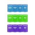 服用時間帯に合わせて錠剤を収納できるピルケース。グリーン/ブルー/パープルのカラーアソート。