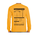 Contractor Perfect Wear 現場向けのPerfectなウェアが登場!! バックにはあらゆる単位がコンバージョンされた一覧がプリント 右腕にはインチ&メトリックルーラーが、左腕にはボルトの太さ計測に便利なホールプリント。 安全カラーなイエローボディを採用した現場仕事には欠かせないウエアです。 いかにもアメリカらしいウエアで、現場で自慢ができる一着です! 年中使えるロングスリーブ。