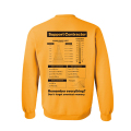 Contractor Perfect Wear。 現場向けのPerfectなウェアが登場!! バックにはあらゆる単位がコンバージョンされた一覧がプリント。 右腕にはインチ&メトリックルーラーが、左腕にはボルトの太さ計測に便利なホールプリント。 安全カラーなイエローボディを採用した現場仕事には欠かせないウエアです。 いかにもアメリカらしいウエアで、現場で自慢ができる一着です! 秋冬に最適なクルーネックスウェット。