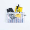 CAMPシリーズで好評の半透明のPE素材のフラットケースの片面をカラーや柄に変えたデイリーユースのシリーズ。 開口部は面ファスナーを使用し付属のコードを引っ張り開ける実績のあるデザインです。 スマホやメモ帳にペンなどバッグインに便利なサイズです。 3サイズ展開の一番小さいサイズです。