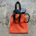 レトロなイメージのストライプ柄メッシュ生地を使用した巾着型のイージーな仕様のトートバッグ。