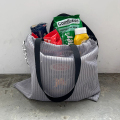 レトロなイメージのストライプ柄メッシュ生地を使用した巾着型のイージーな仕様のトートバッグ。