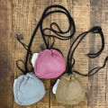 丸底型の巾着式スモールショルダーバッグ。 ショルダーには6mmのコードを使用し、結いて長さの調節をするデザインです。 色糸を組み合わせて織り上げたメッシュ生地を個性的な印象になる様に裏つかいしています。 ポケットが少なくなる夏のスタイルにポケット代わりに活躍する便利なサイズ感。 丸型の底ですが芯材は入っておりませんので入れる物により形が変わります。 独特な素材感のメッシュ生地。 脇にタイベック生地のラベルがついています。
