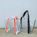 透明の塩化ビニールに、ポリエチレンの糸を格子状に入れた素材を使用したシリーズ。 ベーシックなトートバッグ型にロゴテープがポイントになるデザインです。 普段使いはもちろん、夏のレジャーシーンにも活躍する素材のバッグです。 ハンドル色がオレンジ・ブラックの2色展開。 中が見えるので、入れるポーチなどでもアレンジできます。 ハンドルはブランドロゴをデザインした織テープ。