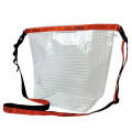 WEEKENDERでは定番のロールトップ式ケースを透明なグリッド生地で作りました。