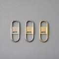 カラビナタイプのキーリングをCANDYなりにデザインするとこういう感じになりました。スプリング式で脱着しやすく、開閉式のセンターパーツがストッパーになっているのでベルトループに付けた際にキーリングと鍵の回転を防ぎます。