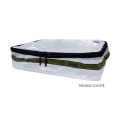 旅行やキャンプ時の着替えの収納や、ギア類の収納に、平らにおいて積み上げたり、さらに大きなバッグなどに立ててきっちり収納したりと、組み合わせの工夫で気持ちよく収まるケースです。