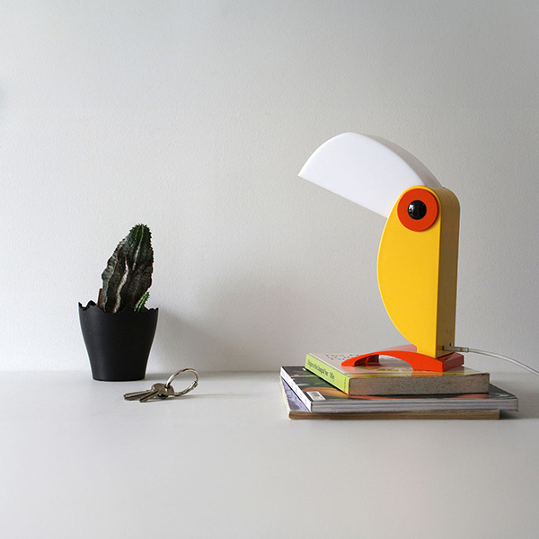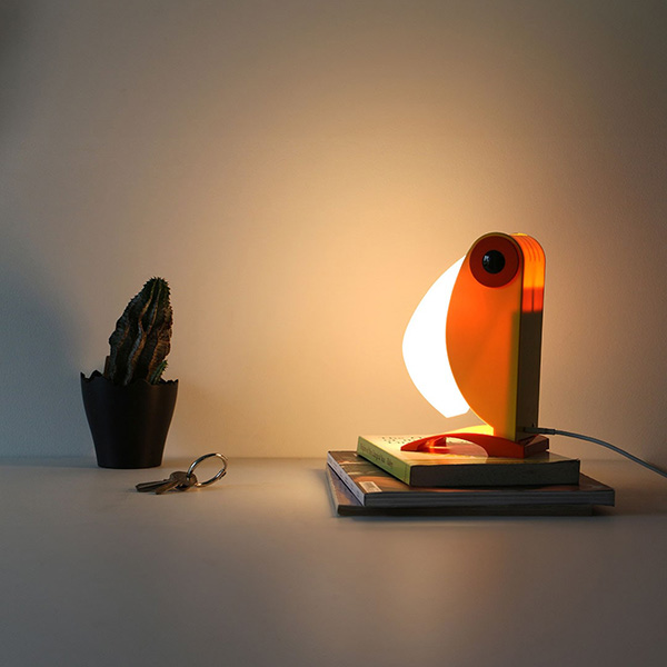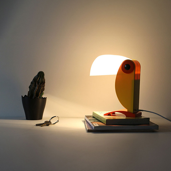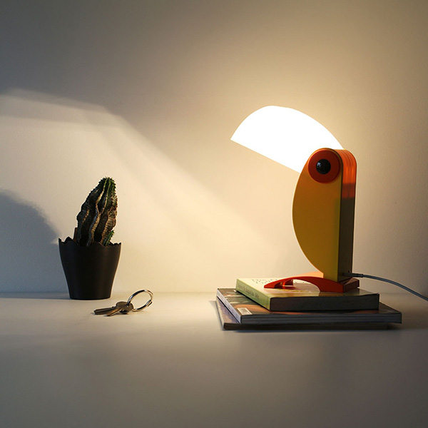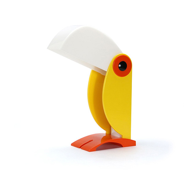南米の鳥オオハシをモチーフにしたこのランプは、アイコニックなデザインとフォルムが特徴的で、今でもミッドセンチュリーのヴィンテージコレクターの間では高い人気を誇っています。