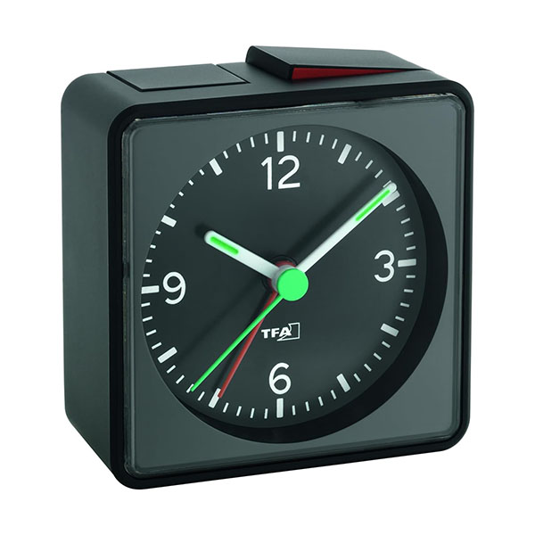蓄光性の針で暗がりでも視認性に優れスヌーズ機能付き。