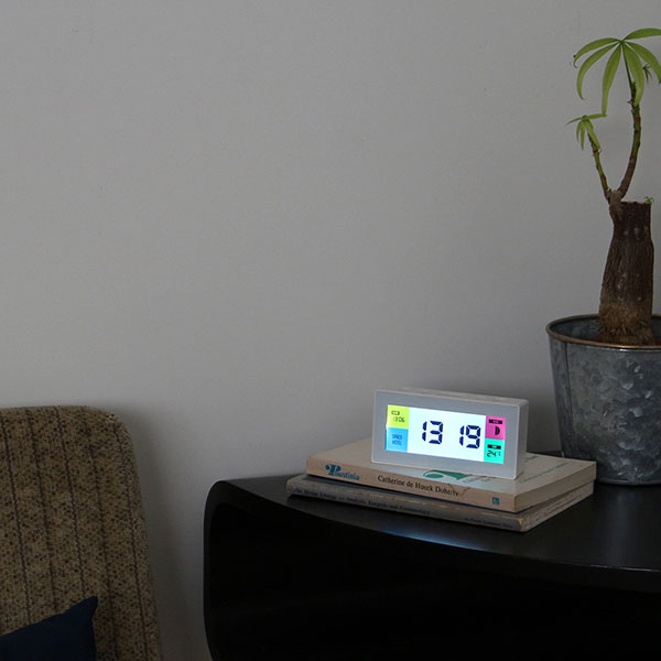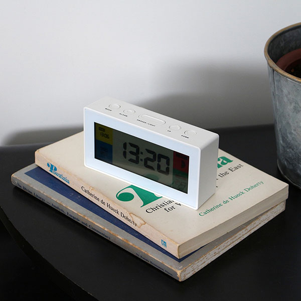 スクエアでシンプルなフォルムとビビッドなディスプレイパネルの組み合わせは、1970〜80年代のヴィンテージクロックを彷彿とさせ、スペーシーな雰囲気は現代に新鮮さを与えてくれます。