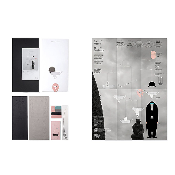 ベルギーの画家ルネ・マグリットの作品「山高帽の男」を再解釈しデザインされたモビール作成キット。