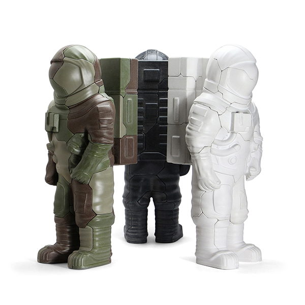 宇宙飛行士を大胆に抽象化した、アートとデザインの境界を超えるオブジェ。
