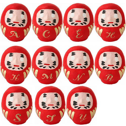 「無病息災、家内安全、商売繁盛、厄除祈念」張り子の郷土玩具イニシャル小だるま。