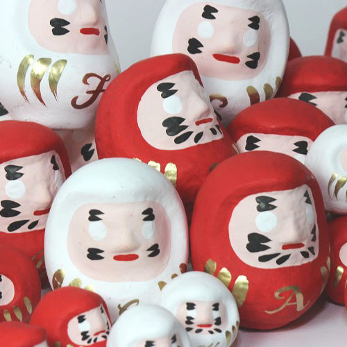 手仕事のあたたかさや、昔から「家内安全」や「商売繁盛」など、願いを込める為に造られた、いわば「無くて困る物ではないけれど、あるとホッコリ、嬉しいもの。」的な存在。このイニシャル小だるまは福島の白河だるま。