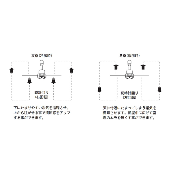 回転を変更することで下方向にも上方向にも風を送ることができ