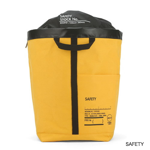 12ozのコットンキャンバス素材。変形ラウンド型のポケットつきピリエです。