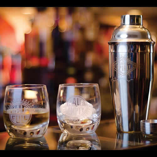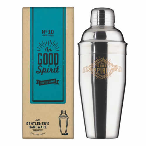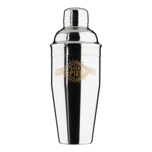 『上機嫌だぜ!』というメッセージがプリントされたステンレススチールのカクテルシェーカーは楽しいパーティーの必需品です!