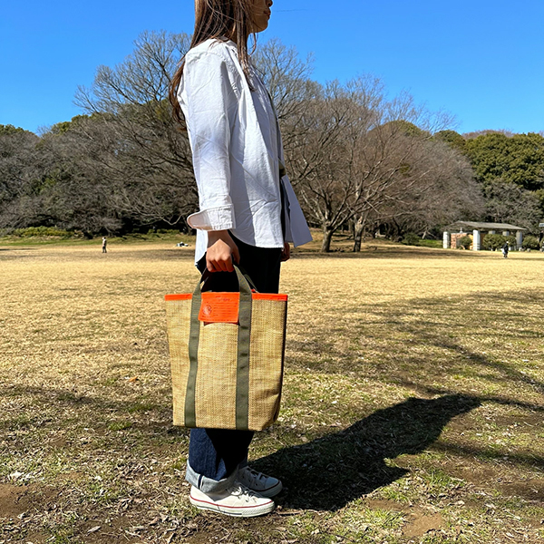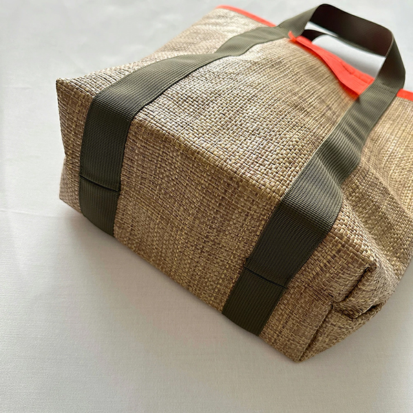 ざっくりと編んだようなナチュラル感のある夏らしい素材にアンマッチなネオンカラーの反射素材を組み合わせました。