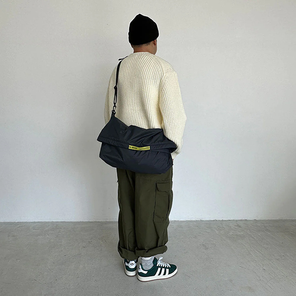 薄手のナイロン生地を使用したライトウェイトなパッカブルショルダーバッグ。
