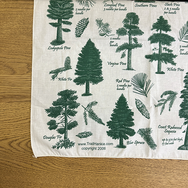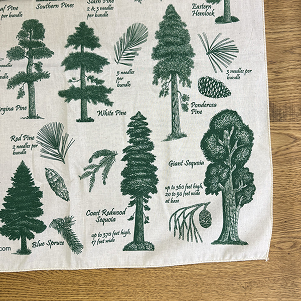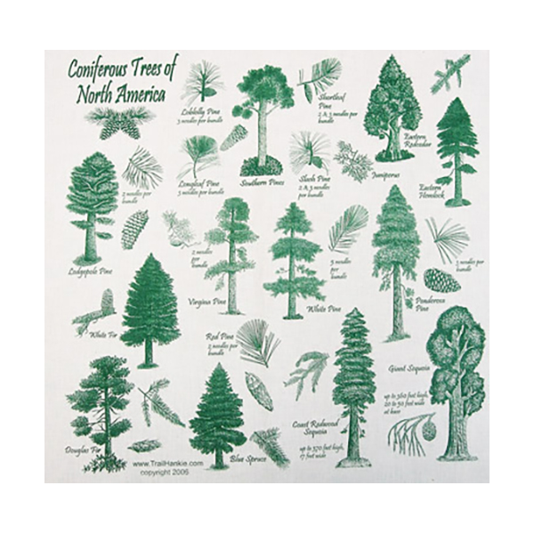 この楽しくて教育的なバンダナには、北米の最も有名な木のいくつかのイラストが描かれています。