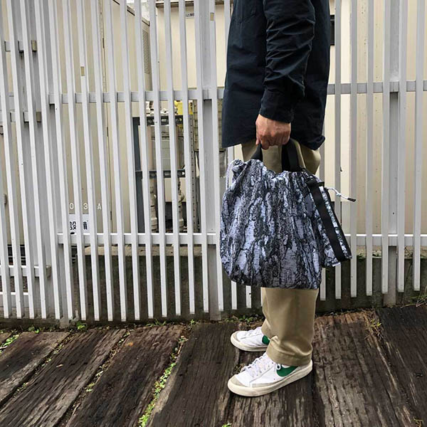 樹皮をモチーフとしたオリジナルデザインのカモフラージュ柄を使用した用途別パッキングシリーズ。
