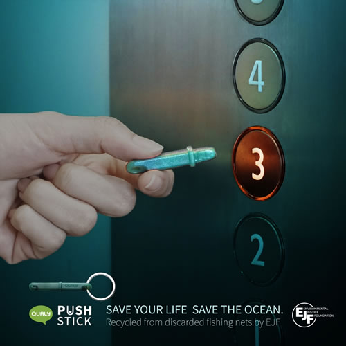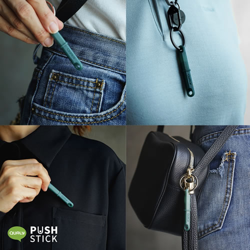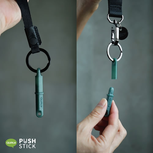 持っていてよかった安心がここにある!!! 世界的な新型コロナウィルス感染拡大を受け、今自分たちができることを考えたタイのブランド『QUALY』は非接触で感染予防につながるプロダクト(プッシュスティック)を廃棄漁網をリサイクルした素材から作りました。 今まで当たり前に素手で押していたボタン。エレベーター使用時やバスの降車、ATMや暗証番号入力、ドアベルに開閉ボタンなど…よくよく考えると不特定多数の人が触れる場所。そこが雑菌の温床になることは必至です。 こんな時、プッシュスティックは私たちの指の代わりとなり、衛生的にボタンを押すことを叶えてくれます。 使う時はスティックのカバーを外してボタンを押します。先端はなめらかで、押すボタンを傷つけません。6.5cmと手のひらにすっぽり収まるサイズなので、目立たずにさりげなく使えるのも良いところです。 リングが付いているので、バッグやキーホルダーにつけたり、ネックレスの様に首から下げたり、カラビナでベルトループに付けたりとすぐに取り出せる場所や身に付けておくことができます。リングはキャップとスティックとどちら側にも付け替えられます。