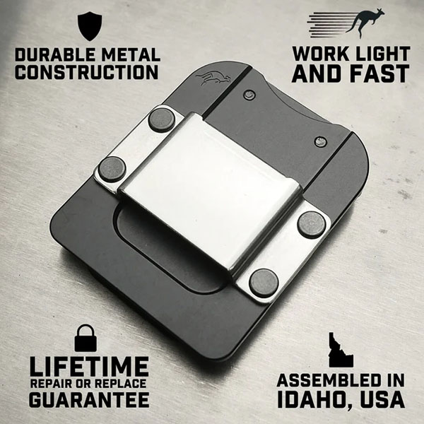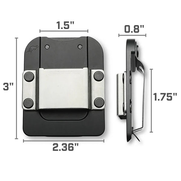 ・保持タブ付きのスプリングスチール製ベルトクリップは最大 1.75 インチ (45 mm) までのベルトに対応
